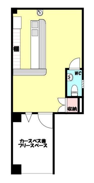 カウンター・2層シンク・台下冷蔵庫、室内設備は残置物